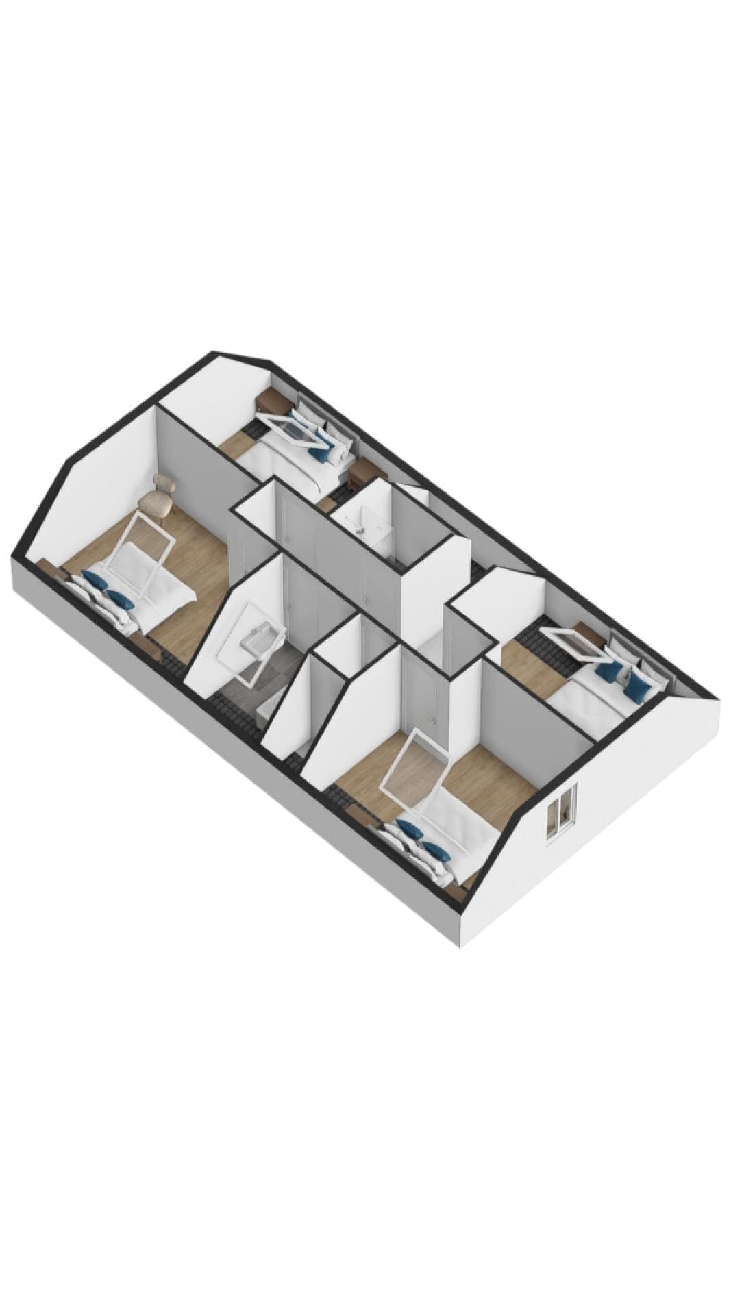 Op de eerste verdieping vind je via de overloop maar liefst vier royale slaapkamers, elk met een eigen karakter. De charmante schuine daklijnen creëren een knusse, warme sfeer en laten tegelijkertijd veel daglicht binnen. Deze verdieping is voorzien van twee luxe badkamers én een apart toilet, waardoor comfort en privacy gewaarborgd zijn. De tweede badkamer beschikt over een ligbad, wastafel en designradiator, terwijl de derde badkamer een stijlvolle inloopdouche, wastafel en designradiator biedt. Met in totaal drie badkamers is deze woning ideaal voor grote gezinnen of het ontvangen van gasten in stijl.