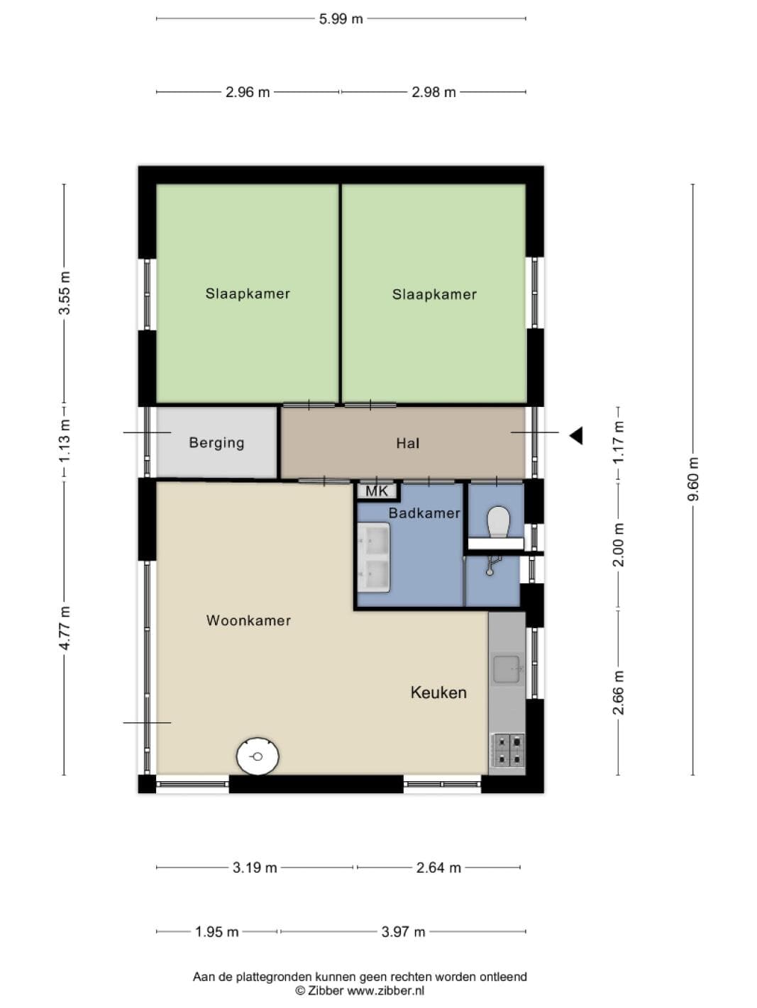 In de woonkamer vind je de gezellige zithoek met grote raampartijen en open haard en aangrenzend de eethoek met keuken. Tevens zijn er twee slaapkamers aanwezig en een badkamer met inloopdouche. Het toilet vind je in de hal.