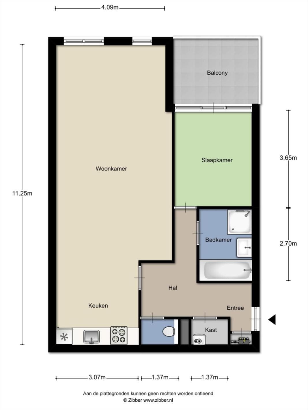 Daarnaast beschikt het appartement over 1 slaapkamer met aangrenzend een badkamer met wastafel, ligbad en douchehoek en een separaat toilet.