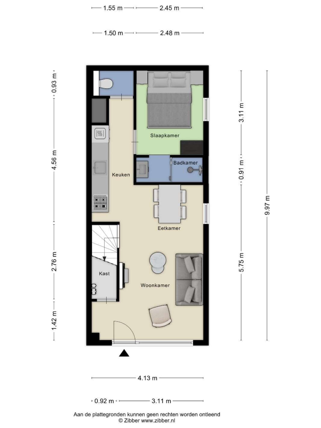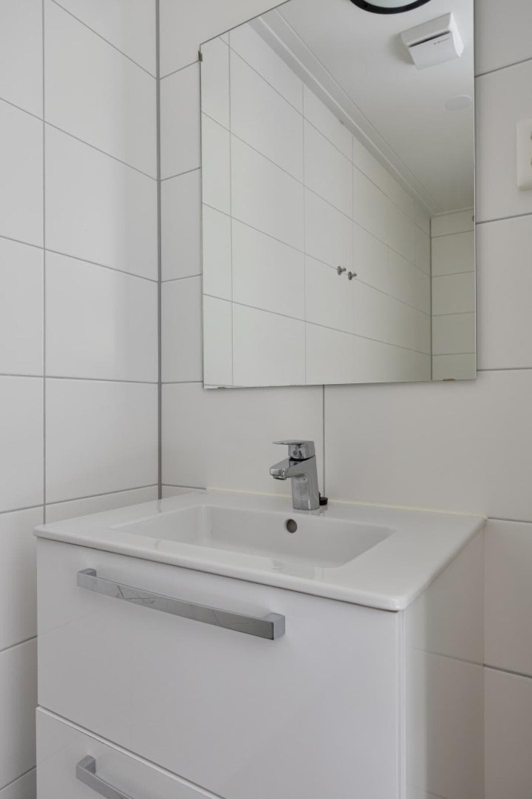 Aangrenzend bevindt zich een comfortabele slaapkamer met twee eenpersoonsbedden en een badkamer ensuite, voorzien van vloerverwarming en een inloopdouche. Daarnaast is er op de begane grond een apart toilet.