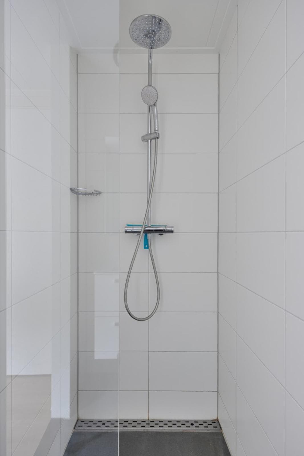 Op de verdieping vind je een tweede slaapkamer, eveneens met twee eenpersoonsbedden, en een tweede badkamer met inloopdouche.