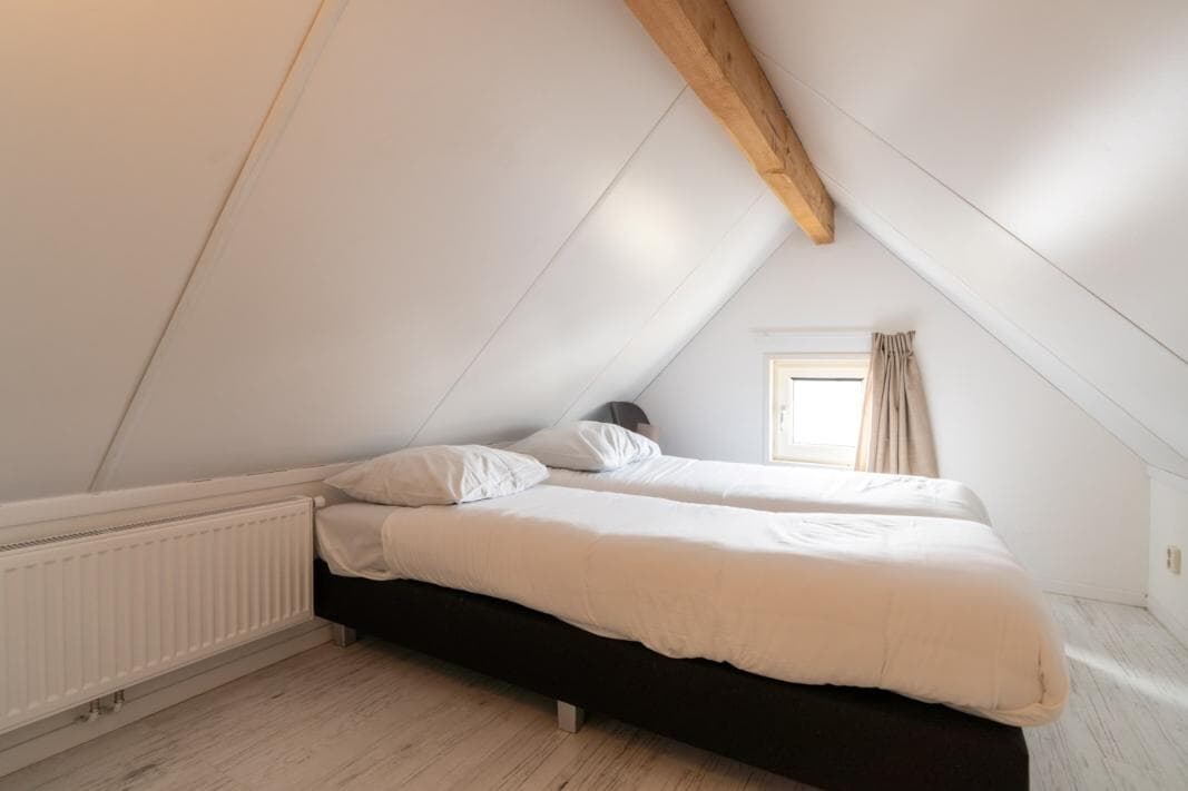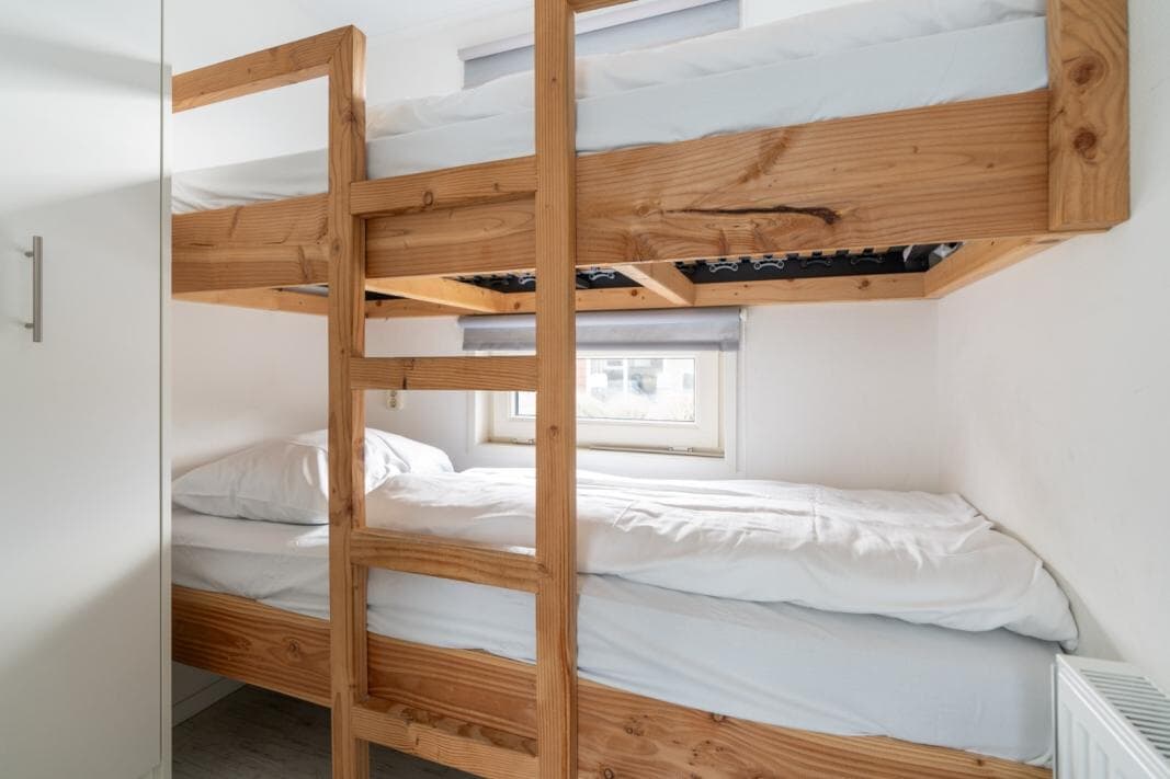 Beneden zijn 3 slaapkamers, waarvan 2 met 2 eenpersoonsbedden en 1 met een stapelbed voor 2 personen. Daarnaast is er een slaapzolder met 2 eenpersoonsbedden. Beneden zijn 2 badkamers voorzien van een douche en een toilet.