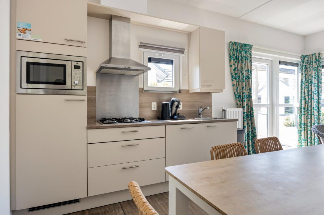 In de keuken vind je onder andere een vaatwasser, combimagnetron en koffiepadapparaat.